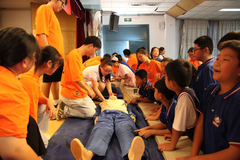 ICU的護理人員向學生們講解并演示了急救技能——心肺復蘇術,并耐心指導學生們利用模擬人進行實操。學生們對此表現(xiàn)出了極大的興趣,認真觀看醫(yī)務人員演示及其他學生的操練,積極參與操作練習。通過此項培訓,讓學生們了解并掌握這一挽救生命的急救技能,在關鍵時刻服務社會。