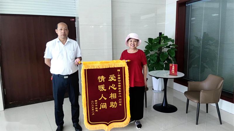 近日,年過七十的梁女士在親屬的陪伴下來到勞代公司,將一面寫著“愛心相助 情暖人間”的錦旗送到了退休登記部部長劉松軍的手中,她熱淚盈眶地說:“我七十多了,終于領到了退休工資,非常感激劉部長的慷慨解囊,不是親人勝似親人!”