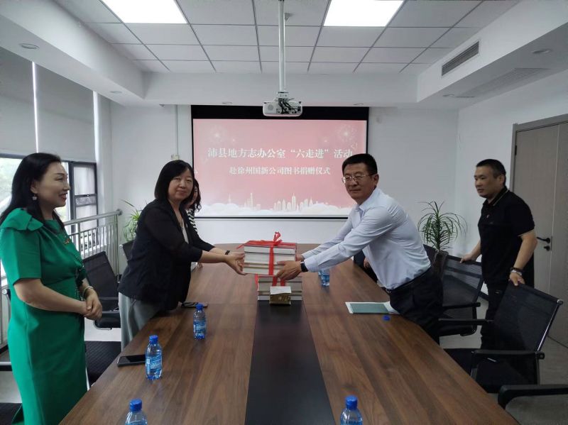 會(huì)上,徐州國(guó)新公司主要負(fù)責(zé)人介紹了徐州國(guó)新公司近期發(fā)展情況??h志辦向國(guó)新公司捐贈(zèng)書柜2個(gè),圖書10余種,共計(jì)100余冊(cè)。捐贈(zèng)圖書均為地方志文獻(xiàn)類書籍,內(nèi)容涵蓋沛縣政治、歷史、地理、人物等多個(gè)領(lǐng)域。