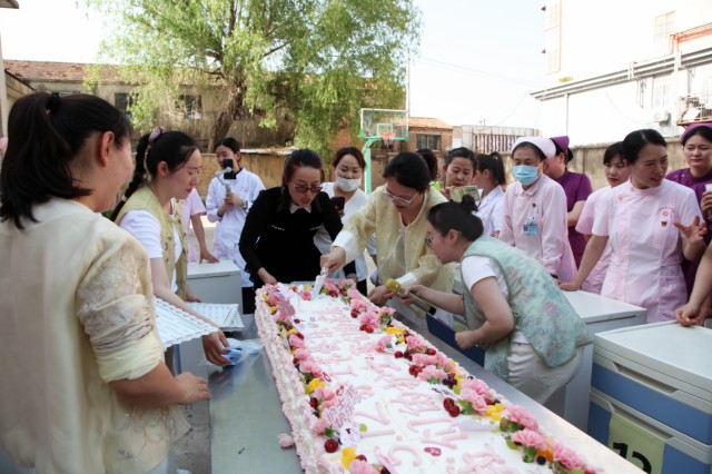最后進(jìn)入激動(dòng)人心的共享節(jié)日蛋糕環(huán)節(jié)。護(hù)理部主任韓春蕾手持刀具,將節(jié)日蛋糕切成一塊塊,親手遞到各科護(hù)士長手中,再由護(hù)士長們分發(fā)至每一位護(hù)士姐妹手中。精美的蛋糕、甜蜜的滋味,仿佛溫柔的懷抱,包裹著每一位護(hù)士,她們臉上洋溢的燦爛笑容,預(yù)示著生活如這蛋糕般甜蜜圓滿。