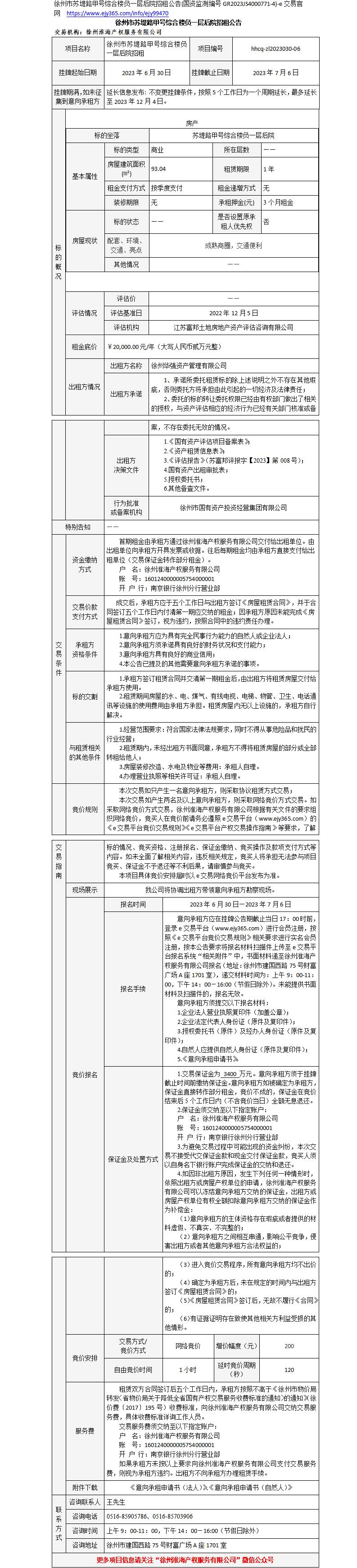 江蘇徐州云龍區(qū)中山南路漢御花園B座一層部分、二層部分、六層房產整體招租公告