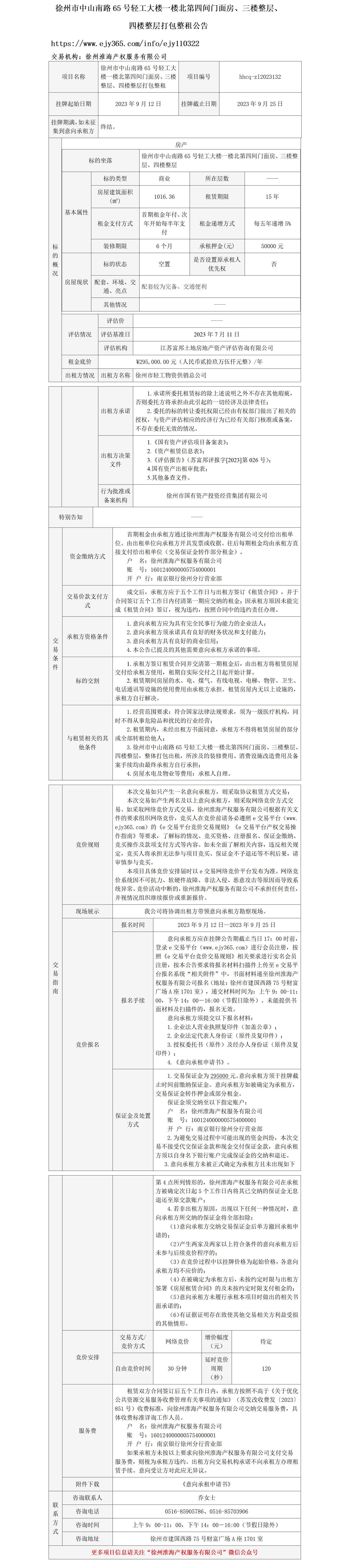 徐州市中山南路65號輕工大樓一樓北第四間門面房、三樓整層、 四樓整層打包整租公告