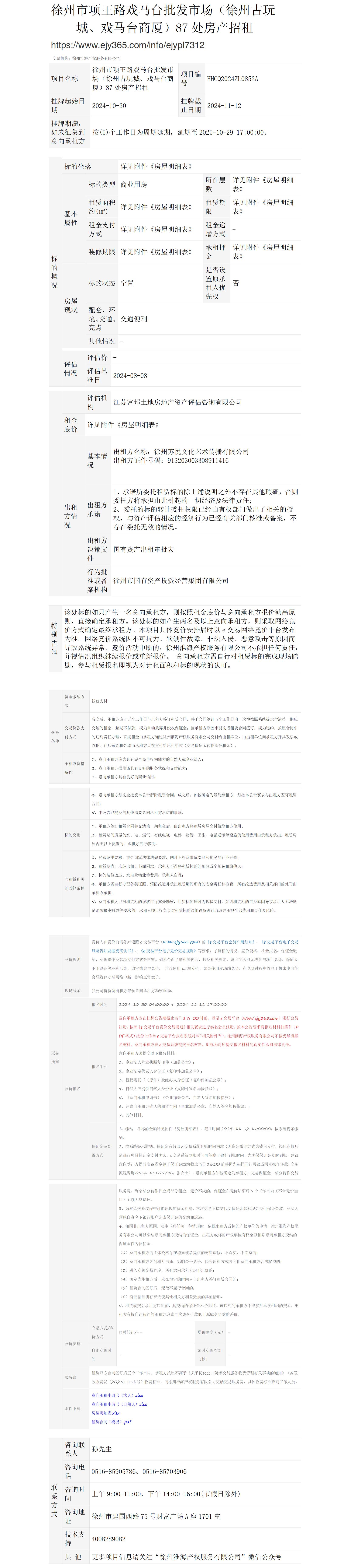 徐州市項王路戲馬臺批發(fā)市場(徐州古玩城、戲馬臺商廈)87處房產(chǎn)招租