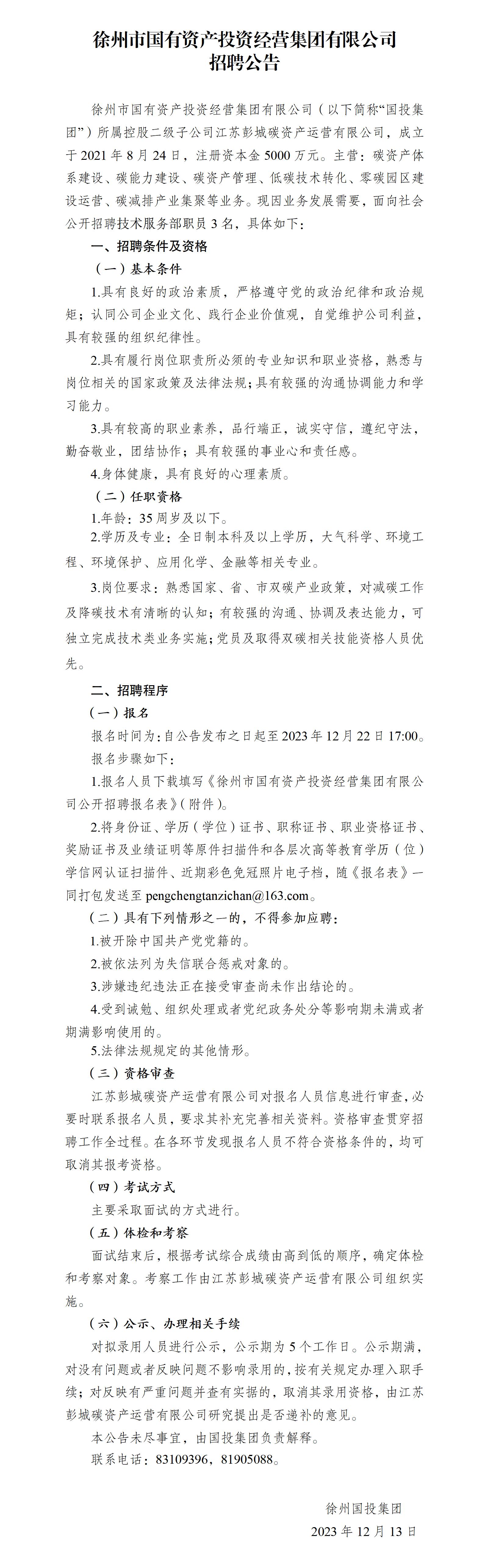 徐州市國有資產(chǎn)投資經(jīng)營集團(tuán)有限公司所屬企業(yè)公開招聘公告