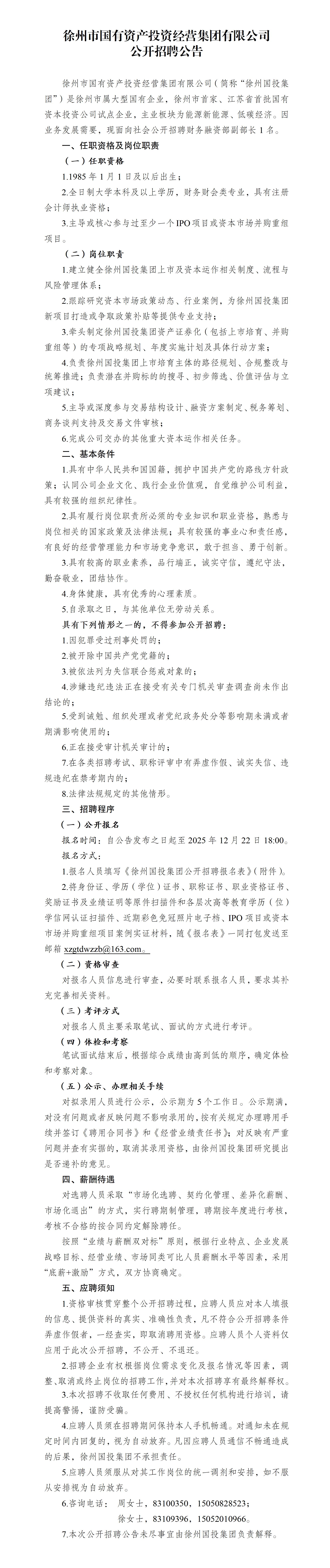 徐州市國有資產(chǎn)投資經(jīng)營集團(tuán)有限公司公開招聘公告