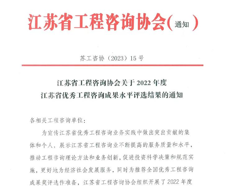 喜訊!工程咨詢中心5項(xiàng)咨詢成果榮獲江蘇省優(yōu)秀咨詢成果獎(jiǎng)