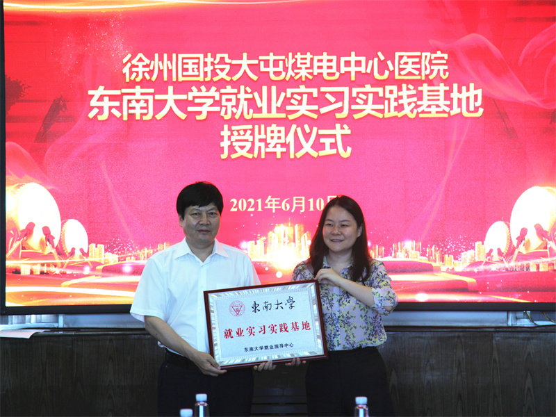 6月10日下午,大屯煤電中心醫(yī)院與東南大學(xué)舉行就業(yè)實(shí)習(xí)實(shí)踐基地簽約授牌儀式。東南大學(xué)團(tuán)委副書記張琰、學(xué)生處副處長(zhǎng)顧欣、信息科學(xué)工程學(xué)院黨委副書記王婧菲,沛縣人民政府副縣長(zhǎng)馮文勇,徐州國(guó)投副總經(jīng)理翟靜等出席儀式。
