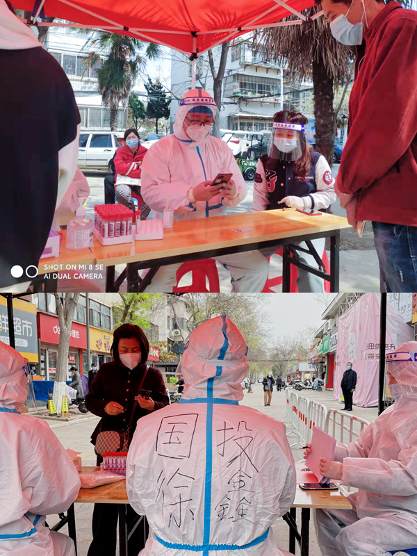 徐鑫在3月28日晚接到云龍區(qū)急需志愿者的通知后,沒有片刻地猶豫,立即報名,以最快速度加入了首批志愿者行列,從協(xié)助醫(yī)護及社區(qū)工作人員進行第一輪核酸檢測服務(wù)開始,一直到現(xiàn)在,徐鑫已堅守在志愿者崗位長達10天,是華強資產(chǎn)公司服務(wù)時間最長的一位志愿者,他所服務(wù)的社區(qū)多達4個,橫跨云龍區(qū)、泉山區(qū)。在核酸檢測服務(wù)中,徐鑫始終堅守一線,化身全能“大白”,儼然已成為后續(xù)報到的志愿者們的“導(dǎo)師”,上午采集黃碼人員信息,下午上門核發(fā)通行證,搬運物資,維持秩序,參與每日例會,為社區(qū)疫情防控積極建言獻策……志愿者的全線崗位都有徐鑫奔波忙碌的身影,他堅定地向社區(qū)保證:“戰(zhàn)‘疫’不停,絕不離崗”!