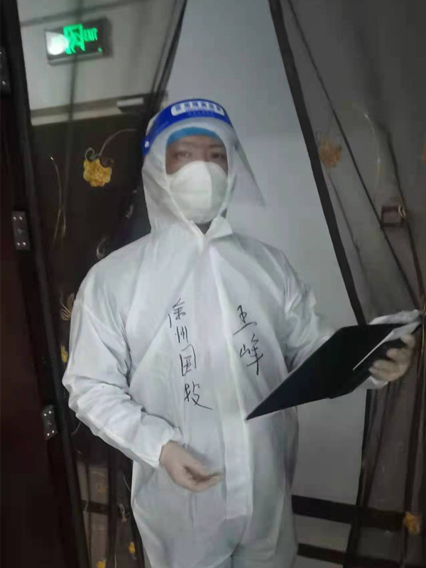 葛勤勤是物華公司黨支部第一位主動向社區(qū)報到的同志,她參與服務(wù)的社區(qū)是富國社區(qū),該社區(qū)與她緊鄰的醒獅小區(qū)已出現(xiàn)一位確診病例,防控任務(wù)也更加艱巨。然而葛勤勤在關(guān)鍵時刻巾幗不讓須眉,義無反顧地投入到最危險的檢測點。每天凌晨5點多就要出門,晚上8點多才能到家,厚重的防護服一穿就是一整天,為了減少污染,更是一整天不敢喝水,每天連續(xù)不停的說話,引導(dǎo)居民掃碼、體溫檢測、辦理出入證,嗓子喊啞了,兩個年幼的孩子也無暇顧及,但她卻無悔自己的決定,總是笑著對社區(qū)干部說:“我是一名共產(chǎn)黨員,更代表著我們國投集團青年志愿者的形象,只要疫情防控工作需要,我就會一直堅持下去,與大家攜起手來,共克時艱、戰(zhàn)勝疫情”。
