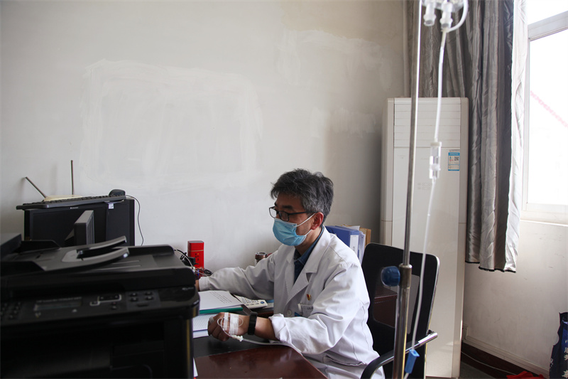 除了辛苦奮斗在采樣現(xiàn)場的人員,還有一位帶給大家感動的人,他就是防控辦副主任趙智勇。防控任務(wù)責任重大,事無巨細。自負責防控工作以來,他加班加點,付出了大量心血,晚上參加上級防控會議是家常便飯,會議開到凌晨一兩點鐘并不少見。身邊的同事評價他“趙老師是全年無休!”工作的緊張及辛苦,使他得了高血壓,這次全員核酸檢測時,他還在輸液治療中。為了不影響工作,他只能中午在辦公室一邊輸液,一邊聯(lián)絡(luò)協(xié)調(diào)采樣現(xiàn)場工作,并每小時一次對各采樣點報來的核酸采樣數(shù)據(jù)進行匯總上報。