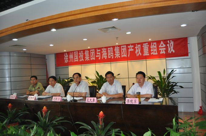 7月8日下午,徐州國(guó)投集團(tuán)與海鷗集團(tuán)產(chǎn)權(quán)重組會(huì)議在集團(tuán)公司12樓會(huì)議室隆重召開(kāi)。市國(guó)資委黨委書(shū)記、主任劉新川、市國(guó)資委黨委委員、副主任王大勇、集團(tuán)公司黨委書(shū)記、董事長(zhǎng)李修明及領(lǐng)導(dǎo)班子成員、海鷗集團(tuán)主要負(fù)責(zé)人梁如意等相關(guān)領(lǐng)導(dǎo)出席了會(huì)議。會(huì)議由集團(tuán)公司黨委副書(shū)記、總經(jīng)理李曉東主持。