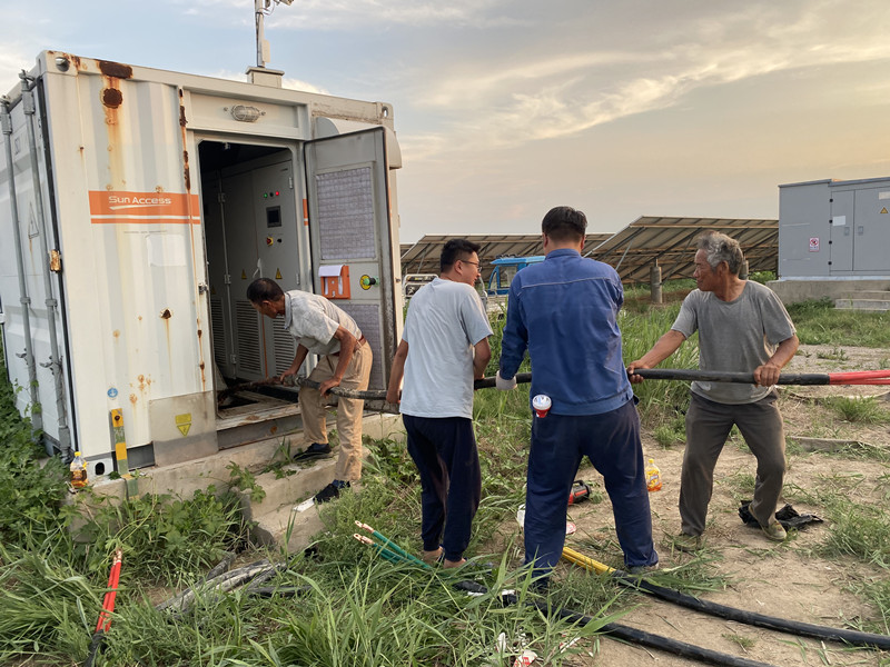 6月26日上午8時,沛縣國源光伏電力有限公司現(xiàn)場運維人員一早便頂著高溫天氣在現(xiàn)場進行檢查,突然發(fā)現(xiàn)監(jiān)控后臺有一臺逆變器由于漏電保護響起了報警聲,現(xiàn)場的運維人員立即前去現(xiàn)場進行檢測,初步判定為逆變器與變壓器中間段電纜損壞。運維人員立即向領導匯報并著手準備電纜的更換工作。由于更換電纜需向供電公司申請生產區(qū)線路高壓側停電,同時為了減少白天的發(fā)電損失,運維人員于當天下午6點半申請高壓側停電并進行電纜更換工作,經過連續(xù)3個小時緊急施工,于當晚9點半就完成了電纜的更換,又過了10分鐘送電完成,恢復生產正常。