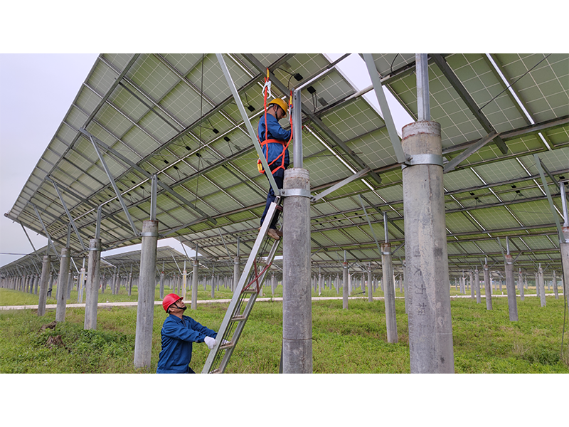 太湖鑫能電站位于安慶山區(qū),總裝機(jī)容量2萬千瓦,占地面積647畝,分別在三個(gè)不同地方,區(qū)域跨度大、道路條件差,有些光伏區(qū)甚至無法通車,只能攜帶沉甸甸的維修設(shè)備徒步前行,身體和設(shè)備維修都面臨著極大考驗(yàn)。10月1日上午11時(shí),驕陽似火,“秋老虎”的回歸使氣溫重返36度。電站班長謝文理帶領(lǐng)巡檢人員走在狹窄的田埂上,厚重的工作服下早已滲滿了汗水,他們已經(jīng)徒步巡檢了3公里的線路,走在最前面的謝文理在匯報(bào)完工作進(jìn)度后,轉(zhuǎn)頭對(duì)同行人員說“12點(diǎn)前必須把這個(gè)區(qū)域仔細(xì)巡檢一遍,下午再去剩下的區(qū)域”。說著他加快了腳步,一行人在泥濘的地面上留下了一串串深深的腳印。