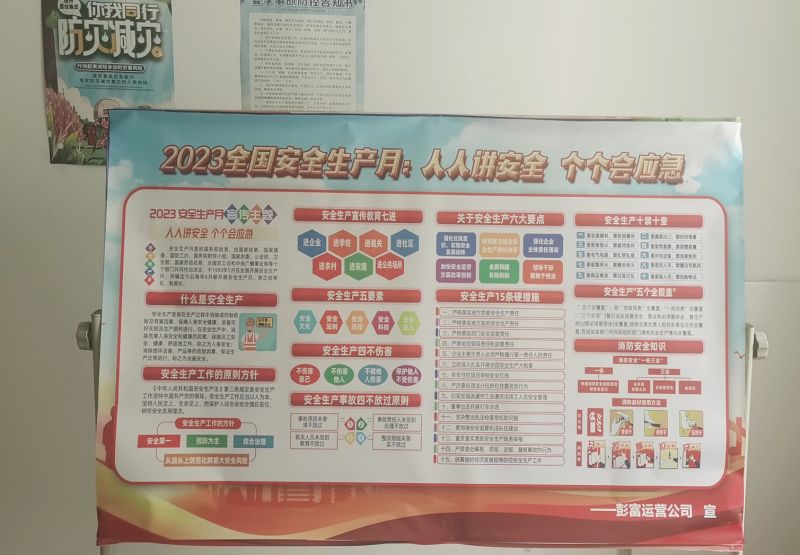 彭富運營公司:今年6月是第22個全國“安全生產(chǎn)月”,彭富運營公司上下樹牢安全發(fā)展理念,壓緊壓實安全生產(chǎn)責任,深入排查安全風險隱患,扎實推進問題整改,筑牢安全生產(chǎn)防線,營造安全、和諧、發(fā)展的生產(chǎn)環(huán)境和氛圍。6月上旬,公司召開“安全生產(chǎn)月”啟動會議,學習了習近平總書記關(guān)于安全生產(chǎn)的重要論述,真正做到學懂弄通,學以致用,融入日常安全生產(chǎn)管理工作。傳達了徐州市委、市政府及集團公司安全生產(chǎn)相關(guān)文件,深刻學習領(lǐng)會了集團公司2023年安全(消防)環(huán)保工作會議精神。通過制定安全生產(chǎn)月活動計劃,制作安全生產(chǎn)月宣傳海報、條幅,以及動員員工積極參與集團公司舉辦的安全知識競賽,進一步增強安全意識。