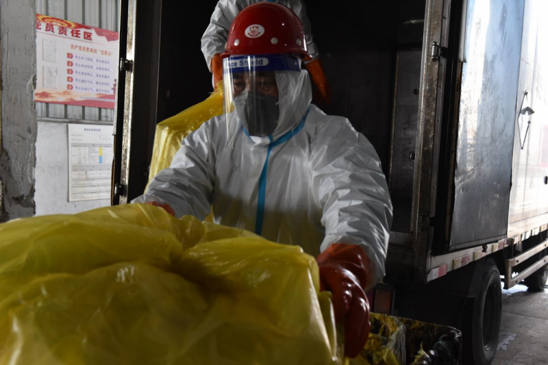 清運車隊的員工,在逼近40℃的高溫下,仍要穿上密不透風的防護服轉運醫(yī)療廢棄物,當一輪工作結束時,脫下防護服,里面的衣物往往已經全部濕透。