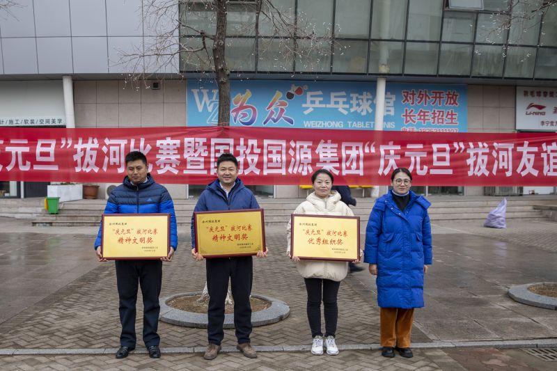 12月29日下午,徐州國投集團“慶元旦”拔河比賽暨國投國源集團“慶元旦”拔河友誼賽在華強體育場前成功舉辦。國投集團黨委書記、董事長孟光,黨委委員、副總經(jīng)理、工會主席王濤,國源集團黨委委員、副總經(jīng)理、工會主席劉廣步出席活動,國投集團6支代表隊、國源集團1支嘉賓隊共100余名運動員參加,參賽隊伍和人數(shù)均創(chuàng)歷史之最。