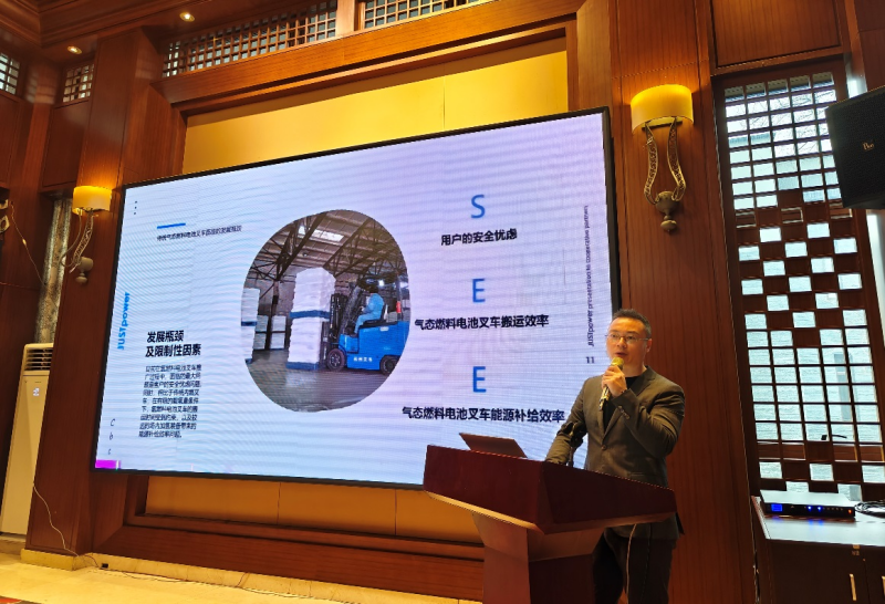 江蘇新氫動力科技有限公司總經(jīng)理張凱提出了氫能叉車多元化場景下的應(yīng)用,對現(xiàn)階段氫能發(fā)展存在的制約性因素提出思考,探討了固態(tài)金屬儲氫技術(shù)的應(yīng)用是否能為氫能產(chǎn)業(yè)帶來新機(jī)遇。