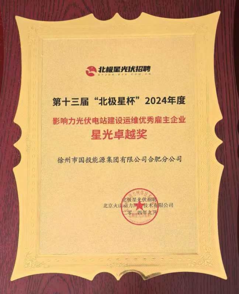 9月5日,在光伏行業(yè)備受矚目的“北極星杯”光伏影響力品牌評(píng)選中,能源集團(tuán)合肥分公司脫穎而出,成功斬獲第十三屆“北極星杯”2024年度影響力光伏電站建設(shè)運(yùn)維優(yōu)秀雇主企業(yè)星光卓越獎(jiǎng)。