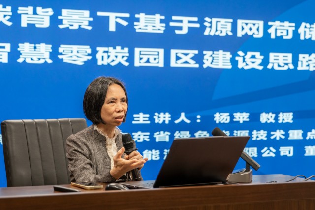 在授課過程中,楊蘋教授系統(tǒng)闡述了源網(wǎng)荷儲一體化的基本概念、系統(tǒng)架構、運行機制及其在提升能源效率、保障電力安全、促進新能源消納方面的重要作用。結合典型案例,重點講解如何運用源網(wǎng)荷儲一體化模式,統(tǒng)籌園區(qū)能源供應、電網(wǎng)運行、負荷管理和儲能配置,實現(xiàn)園區(qū)的低碳零碳運行,打造綠電園區(qū)。最后,結合徐州產業(yè)特點、資源稟賦,共同探討本地區(qū)推動源網(wǎng)荷儲協(xié)同互動、建設零碳園區(qū)的潛在路徑與策略建議。