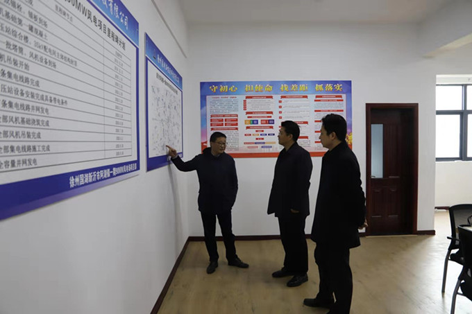 在新沂市阿湖鎮(zhèn),高翔實(shí)地調(diào)研了國湖公司一期90MW風(fēng)電項(xiàng)目升壓站建設(shè)情況,詳細(xì)了解了國湖公司風(fēng)電項(xiàng)目投資規(guī)模、投資收益、各項(xiàng)工作進(jìn)度等情況,并在新沂市阿湖鎮(zhèn)便民中心開展座談交流。高翔指出,徐州國投集團(tuán)作為市屬產(chǎn)業(yè)投資集團(tuán),企業(yè)發(fā)展勢(shì)頭較好、產(chǎn)業(yè)投資積極向上、員工拼搏干勁十足,在產(chǎn)業(yè)投資上取得了一定的成績。國湖公司投資的新沂市阿湖鎮(zhèn)一期90MW風(fēng)電項(xiàng)目作為可再生新能源行業(yè),投資規(guī)模較大,要重點(diǎn)做好如下四項(xiàng)工作:一要強(qiáng)化黨的建設(shè)。國湖公司作為徐州國投集團(tuán)的三級(jí)企業(yè),要按照“國有企業(yè)經(jīng)營到哪里、黨組織就跟進(jìn)到哪里”的原則,著重加強(qiáng)企業(yè)黨組織建設(shè),強(qiáng)化黨組織的政治引領(lǐng)、思想引領(lǐng)、組織引領(lǐng),要將國湖公司黨的建設(shè)與風(fēng)電項(xiàng)目施工相互融合、相互促進(jìn),要接好“全面從嚴(yán)治黨壓力傳導(dǎo)層層壓緊壓實(shí)”這個(gè)接力棒。二要強(qiáng)化作風(fēng)建設(shè)。國湖公司作為產(chǎn)業(yè)投資的執(zhí)行者,要更加堅(jiān)決貫徹落實(shí)中央八項(xiàng)規(guī)定精神,進(jìn)一步強(qiáng)化班子領(lǐng)導(dǎo)的帶頭表率作用,推動(dòng)落實(shí)中央八項(xiàng)規(guī)定和實(shí)施細(xì)則精神常態(tài)化、長效化;要從小事抓起、從小處著眼,思想上繃緊弦、行動(dòng)上管住腿,堅(jiān)決做到不違規(guī)、不逾矩。三要強(qiáng)化流程意識(shí)。國湖公司要按照國有資產(chǎn)保值增值的要求,依規(guī)依法做好國有資產(chǎn)的管理工作;要嚴(yán)格按照“三重一大”實(shí)施辦法要求,強(qiáng)化黨的研究前置程序,進(jìn)一步規(guī)范投資決策流程,確保做到信息透明、標(biāo)準(zhǔn)規(guī)范。四要壓實(shí)“兩個(gè)責(zé)任”。國湖公司要認(rèn)真組織學(xué)習(xí)市委常委、市紀(jì)委書記、監(jiān)委主任董向陽的重要批示精神,要結(jié)合“不忘初心、牢記使命”主題教育檢視問題環(huán)節(jié)要求,重點(diǎn)圍繞“一違三亂兩高兩低”開展全面自查自糾和專項(xiàng)整改落實(shí),進(jìn)一步轉(zhuǎn)變思想觀念、提高政治站位,進(jìn)一步健全組織、理順關(guān)系、配齊人員,推動(dòng)黨的建設(shè)向縱深發(fā)展。