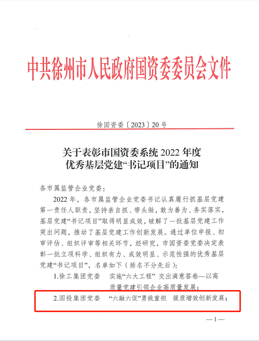 近日,市國資委發(fā)布《關于表彰市國資系統(tǒng)2022年度優(yōu)秀基層黨建“書記項目”的通知》,集團公司黨委書記項目《“六融六促”勇挑重擔 提質(zhì)增效創(chuàng)新發(fā)展》獲評市國資系統(tǒng)2022年度優(yōu)秀基層黨建“書記項目”,這也是集團公司連續(xù)兩年獲得此項榮譽。