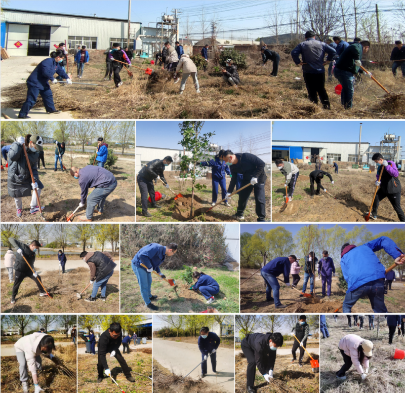 活動現(xiàn)場,大家干勁十足、分工協(xié)作、密切配合,明確清理區(qū)域后,就投身到雜草清理工作中,一派火熱忙碌景象,不一會兒,土地就變得干凈平整。緊接著大家更換工具,拿上鐵锨、鋤頭,刨坑栽樹,揮鍬鏟土、培實(shí)新土、堆起圍堰、提水澆灌……28株杏樹、桂樹迎風(fēng)挺立。