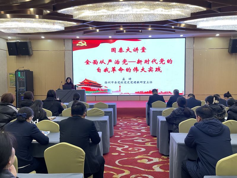 為進一步推動學習貫徹習近平新時代中國特色社會主義思想走深走實,引導廣大黨員干部始終保持對黨的忠誠,不斷增強全面從嚴治黨的政治自覺,12月13日,國泰投資公司邀請徐州市委黨校黨史黨建教研室主任孟婷,以“全面從嚴治黨—新時代黨的自我革命的偉大實踐”主題,為國泰投資黨總支全體黨員進行專題授課。