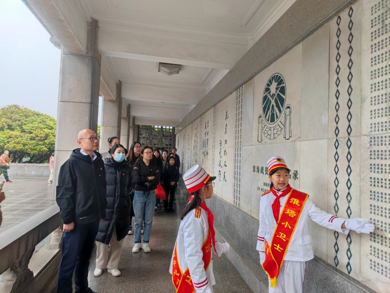 烈士陵園松柏靜哀、氣氛莊重,綿綿細(xì)雨中全體肅立,懷著沉重的心,默哀三分、敬獻(xiàn)鮮花。大家邁著緩慢的步伐繞塔一周,駐足瞻仰塔基上的場景浮雕,當(dāng)年淮海戰(zhàn)役壯觀的場面和戰(zhàn)士們視死如歸的氣勢仿佛重現(xiàn)在眼前。在淮塔小衛(wèi)士的帶領(lǐng)和講解下,觀詳烈士名錄,懷想革命先輩們浴血奮戰(zhàn)的歷史,不無感嘆革命先烈英勇無畏的壯舉。嚴(yán)守紀(jì)律、團(tuán)結(jié)奮戰(zhàn)、不怕犧牲、勇于奉獻(xiàn)的精神深深觸動著在場的每一個人。