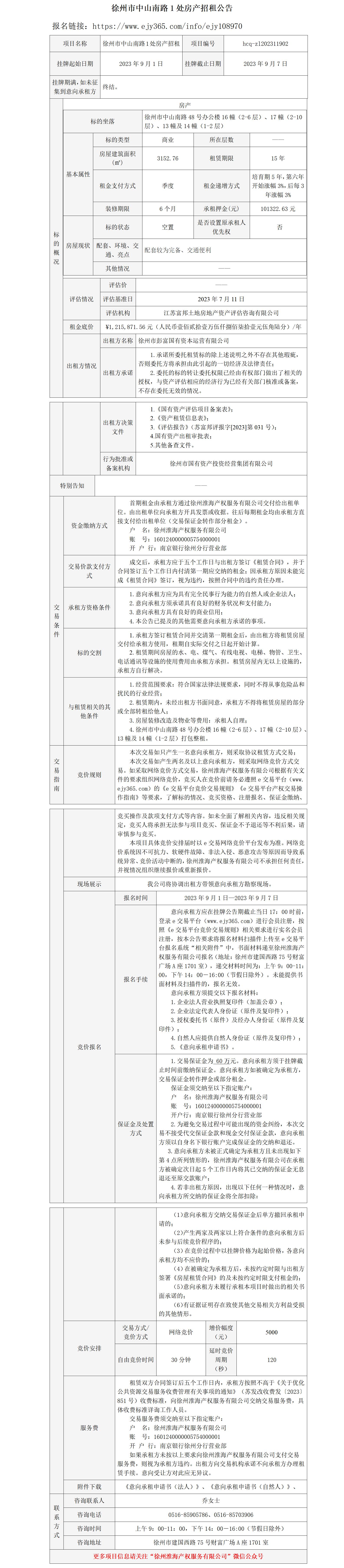 江蘇省徐州市云龍區(qū)輕工大樓902、908室房產整體招租公告