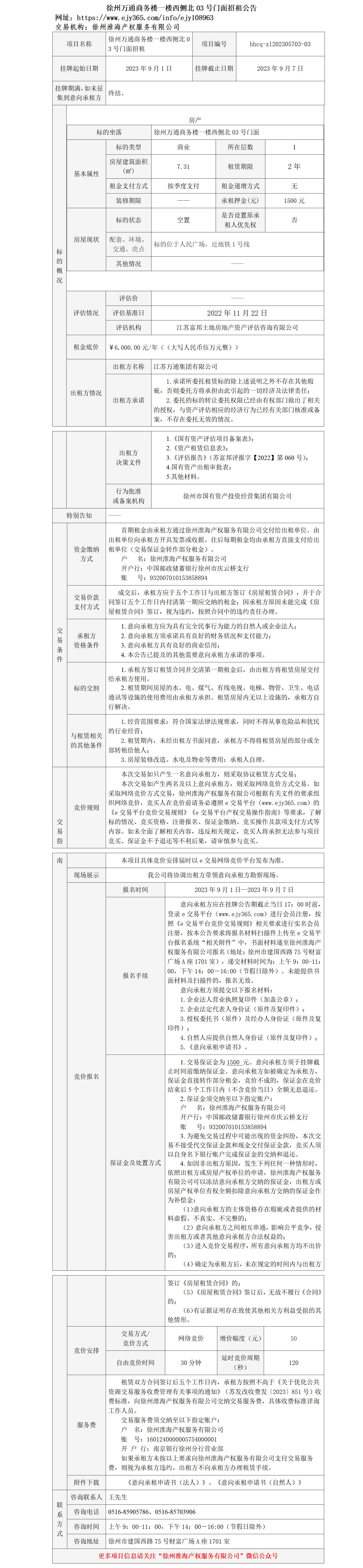 徐州萬通商務樓一樓西側北03號門面招租公告
