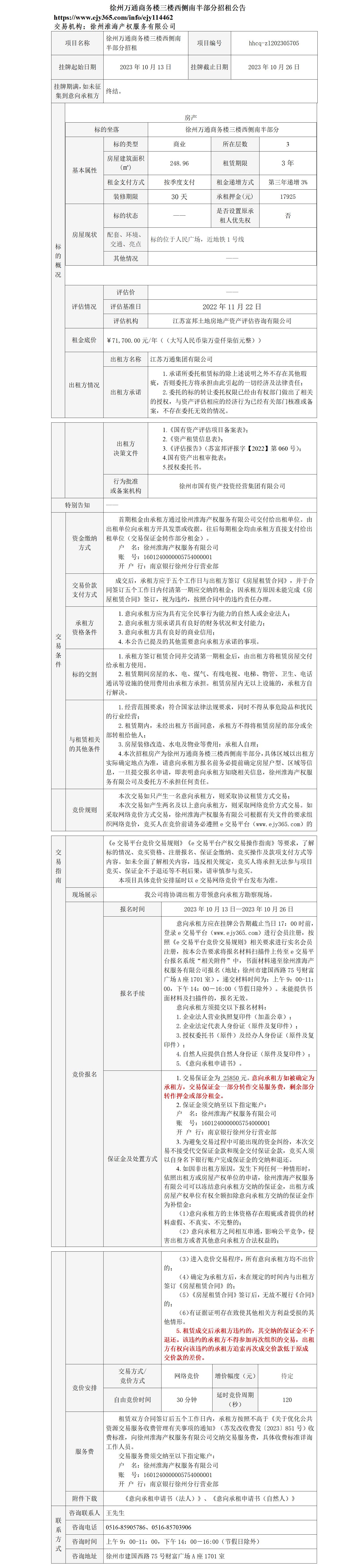徐州萬(wàn)通商務(wù)樓三樓西側(cè)南半部分招租公告