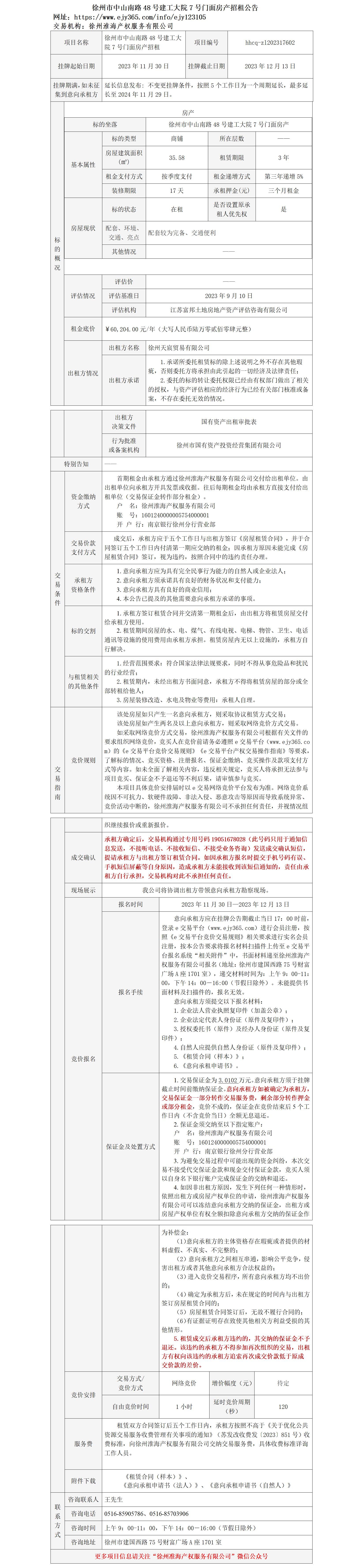 徐州市中山南路48號(hào)建工大院7號(hào)門(mén)面房產(chǎn)招租公告