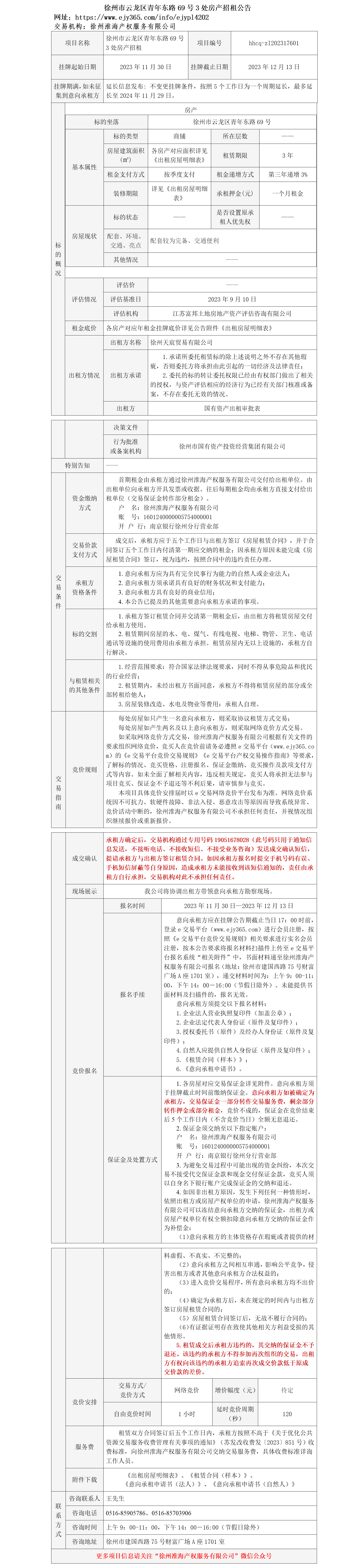 徐州市云龍區(qū)青年?yáng)|路69號(hào)3處房產(chǎn)招租公告