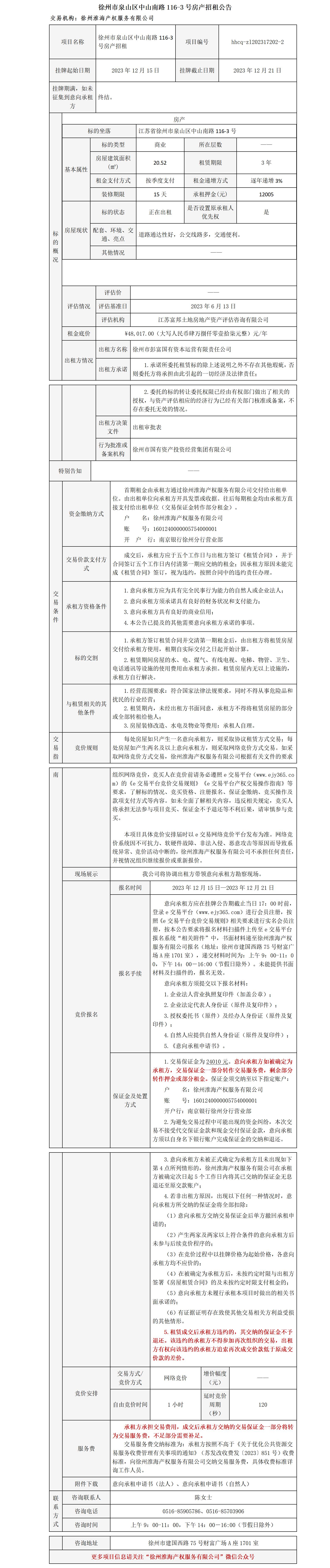 徐州市泉山區(qū)中山南路116-3號(hào)房產(chǎn)招租公告