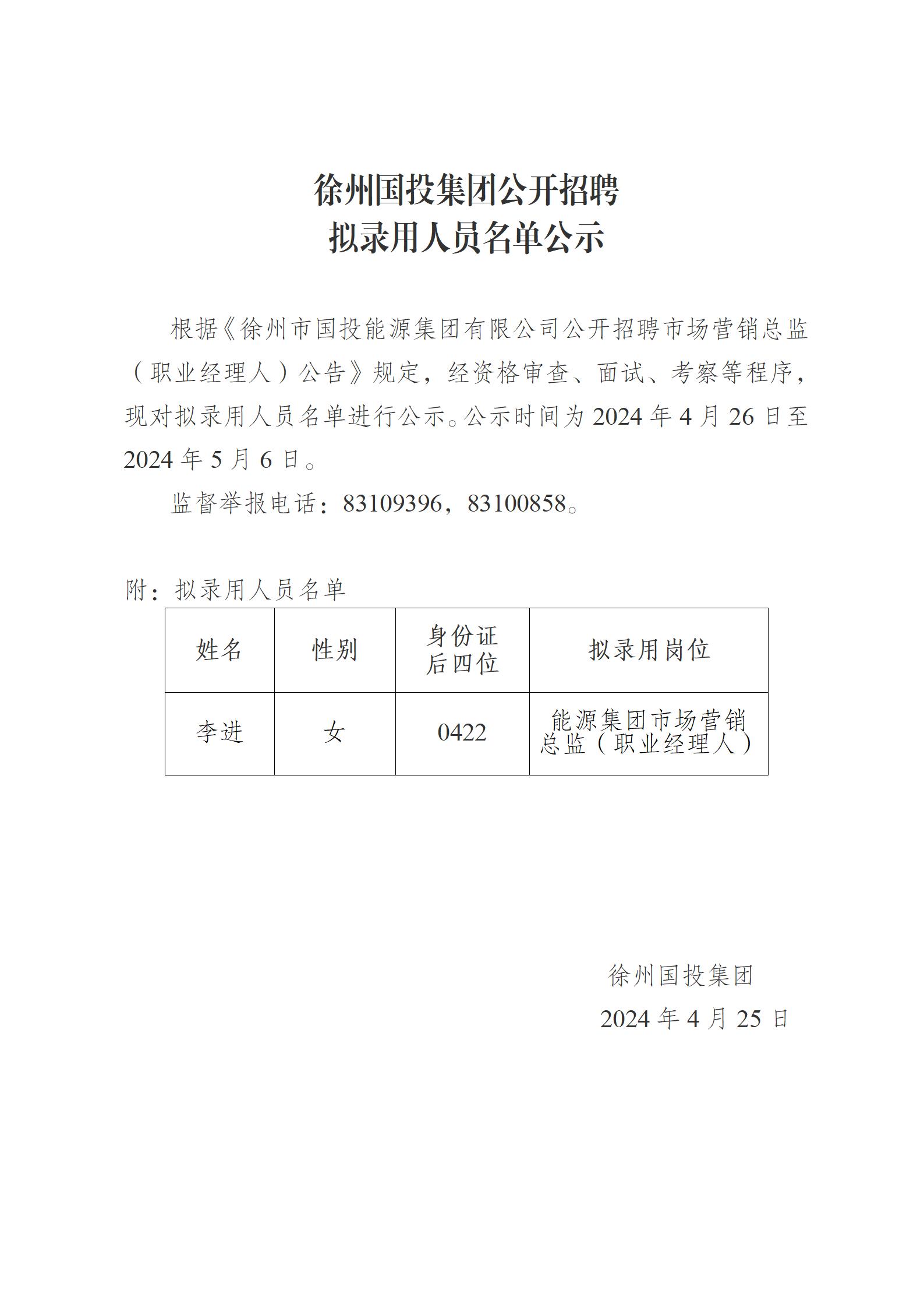 徐州國投集團(tuán)公開招聘擬錄用人員名單公示