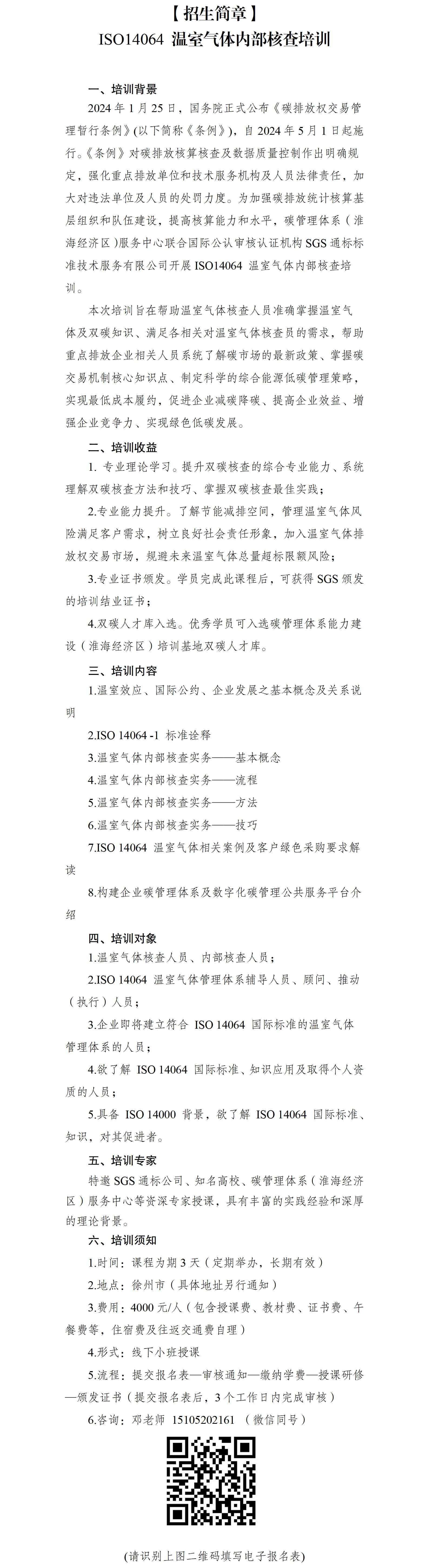 【招生簡(jiǎn)章】ISO14064 溫室氣體內(nèi)部核查培訓(xùn)
