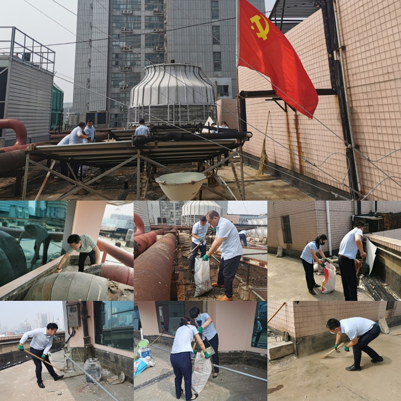 雨季來臨,為確保汛期平穩(wěn)過度,華強(qiáng)資產(chǎn)公司黨總支所屬的國聯(lián)科支部聯(lián)合成功物業(yè)支部于2020年6月15日上午在成功大廈七樓平臺組織“開展義務(wù)勞動、彰顯黨員風(fēng)采”主題黨日活動,聯(lián)合清理平臺常年堆積的雜物。