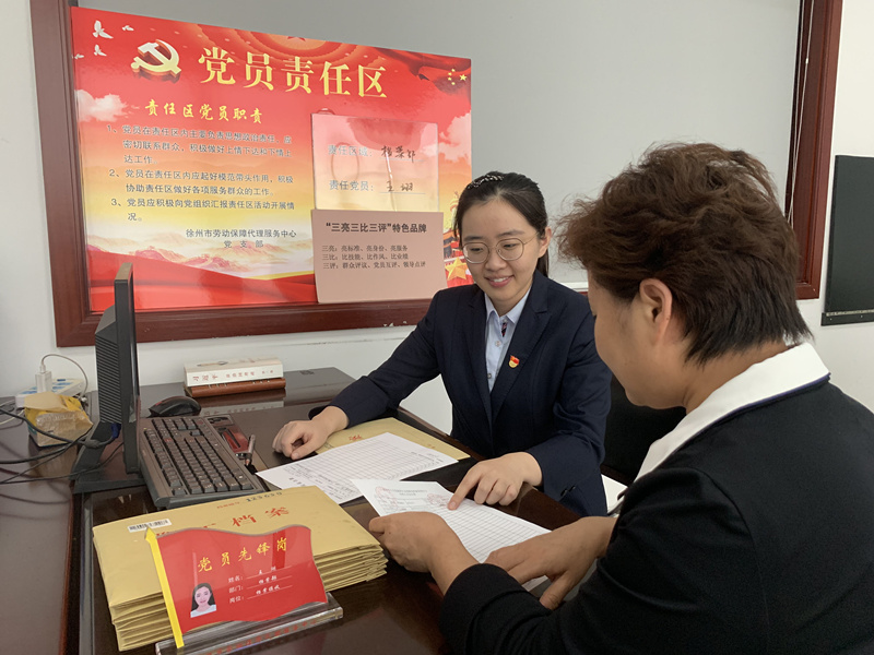 勞代支部根據(jù)工作實際,設(shè)立兩個黨員責(zé)任區(qū),分別為大廳服務(wù)區(qū)和檔案管理區(qū)。責(zé)任區(qū)內(nèi),做到“三亮”:第一,亮標(biāo)準(zhǔn)。區(qū)域內(nèi)懸掛“首問責(zé)任制”“一次性告知制”“限時辦結(jié)制”“服務(wù)承諾制”等相關(guān)業(yè)務(wù)辦理制度標(biāo)準(zhǔn)。第二,亮身份。黨員上崗一律主動佩戴黨徽,設(shè)置黨員先鋒崗,勇于公開黨員信息和照片,亮出黨員身份,主動接受群眾監(jiān)督。第三,亮承諾。在崗位顯著位置向辦事群眾公開黨員承諾內(nèi)容和黨員職責(zé),激勵黨員同志立足本職崗位做貢獻(xiàn),踐行黨員承諾。