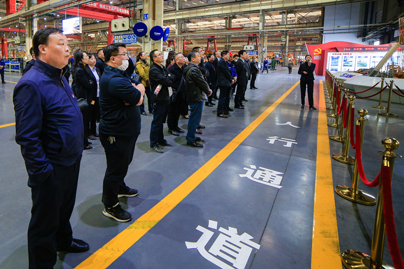 第二站,來到徐工集團重型公司底盤分廠黨支部,同志們重走了習近平總書記視察徐工之路,認真聽取講解員對支部積極打造黨建“新模式”,持續(xù)推行“五個起來”工作法,大力推進黨建理念、機制、手段創(chuàng)新,發(fā)揮黨員先鋒模范帶頭作用等方面的詳細介紹,實地參觀學習了黨建活動園地、“藍精靈”青年團員活動園地。