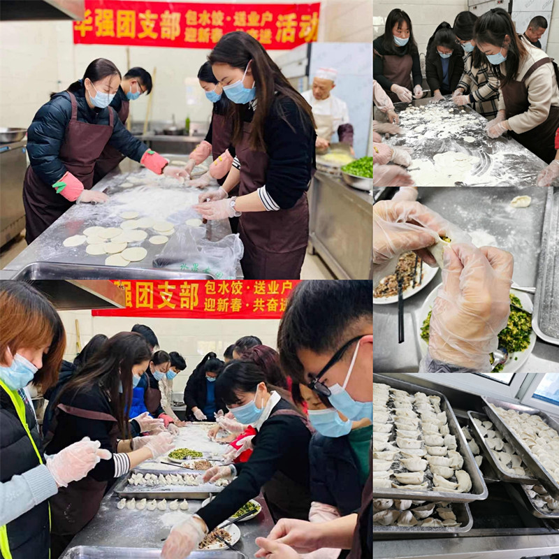 2021年2月10日,恰逢庚子鼠年最后一個(gè)工作日,華強(qiáng)資產(chǎn)公司團(tuán)支部在新春來(lái)臨之際,組織各部室青年干部職工在公司食堂開展了熱氣騰騰的“包水餃 送業(yè)戶 迎新春 共奮進(jìn)”活動(dòng),不僅為體育館部分業(yè)戶及堅(jiān)守崗位的物業(yè)工作人員送去關(guān)懷和問(wèn)候,還為華強(qiáng)全體職工親手制作了一頓年味滿滿的餃子工作餐。