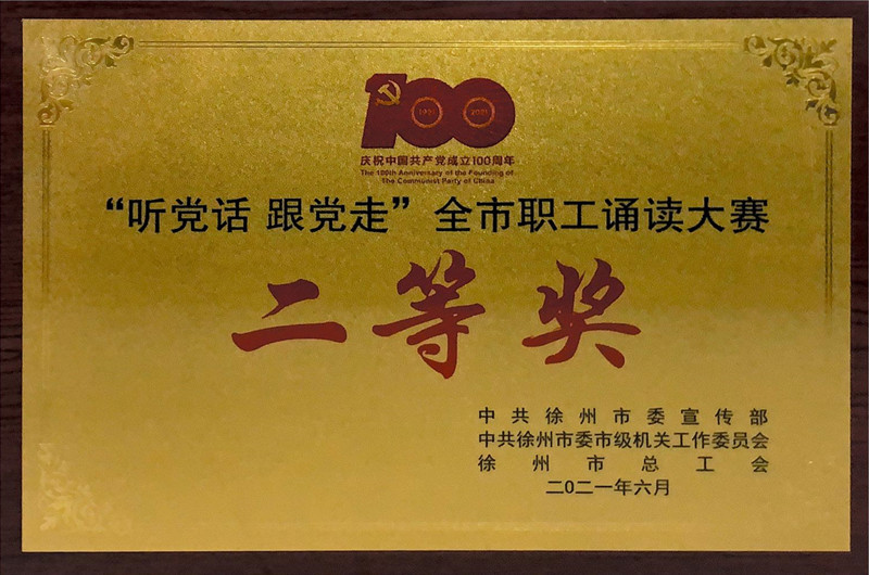 在市總工會(huì)聯(lián)合市委宣傳部、市委市級(jí)機(jī)關(guān)工委、市全民閱讀辦共同舉辦“永遠(yuǎn)跟黨走·建功新時(shí)代”慶祝建黨100周年系列活動(dòng)中,集團(tuán)公司榮獲系列活動(dòng)優(yōu)秀組織獎(jiǎng)。集團(tuán)公司選送的原創(chuàng)配樂詩朗誦《光輝的旗幟》榮獲市總工會(huì)“聽黨話·跟黨走”全市職工誦讀比賽二等獎(jiǎng)!