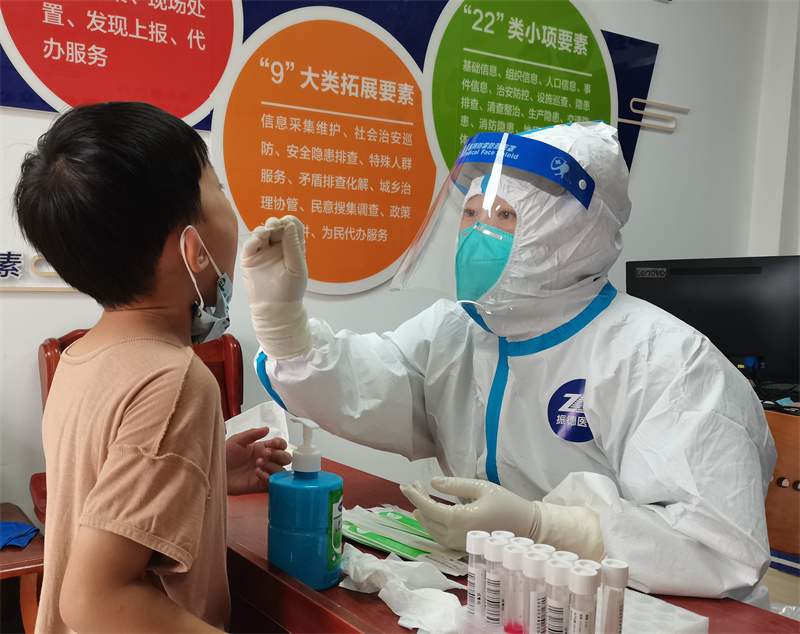 宮克鴻是姐妹中年齡最大的一個,雖然即將退休,依然主動請纓參加援寧,在采樣任務(wù)中勤勤懇懇,任勞任怨,并無微不至地照顧著每一個姐妹,被大家親切地稱為“好大姐”。7月28日上午,她接到了婆婆去世的噩耗,她與婆婆相處30年,感情異常深厚,但卻不能送老人家一程,在悲痛之余,她迅速調(diào)整了情緒,繼續(xù)留在南京同大家一起奮斗。