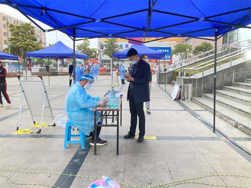 采樣人員匆匆吃了點午飯后,11點半便來到了各自的采樣點,做好了奮戰(zhàn)到深夜的準備。中午,院黨委書記、院長張心海及班子成員先后來到各個采樣點進行督導(dǎo),現(xiàn)場解決問題。晚上7點多,院領(lǐng)導(dǎo)又一次來到各個采樣點進行慰問。