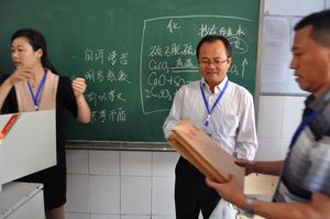 集團(tuán)公司領(lǐng)導(dǎo)在考場(chǎng)合影