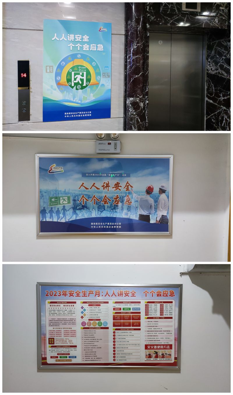 通過安全宣傳展板、安全宣傳橫幅、電子屏幕等方式,在集團公司大樓內(nèi)營造“安全生產(chǎn)月”活動氛圍。