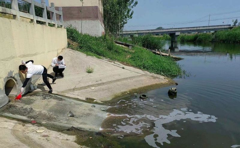 正值盛夏,酷熱難耐,水體溫度都達到了35℃以上,茂盛的草木更是大大增加了尋找檢測點的難度。環(huán)境科技的排查人員們徒步前進,完成采樣、檢測、填報系統(tǒng)等一系列工作,克服艱難保質保量完成各項工作。