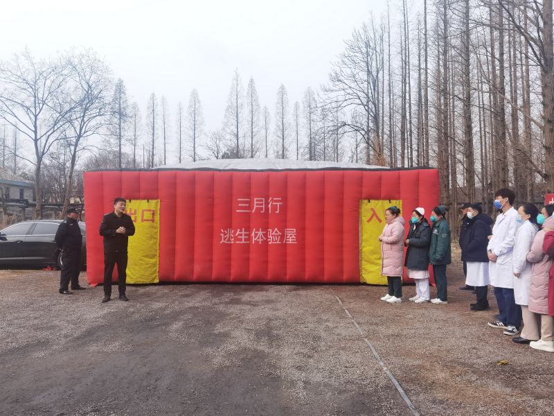 為了貼近實戰(zhàn),讓大家真實體驗火災(zāi)來臨時的緊迫感,現(xiàn)場設(shè)置了充氣式疏散逃生體驗屋,通過設(shè)置煙霧等方式模擬火災(zāi)現(xiàn)場。醫(yī)院邀請了“三月行”安全公司郭教員對參加演練職工進(jìn)行了簡短的培訓(xùn),強(qiáng)調(diào)了進(jìn)入消防體驗屋后的注意事項,參加演練人員分組進(jìn)行演練。在郭教員的指引下,參加演練的人員彎腰捂鼻,依次進(jìn)入消防逃生屋,在彌漫著濃重的煙霧中摸索著彎膝前進(jìn),順利找到了出口逃生,演練在井然有序的氛圍下完成。