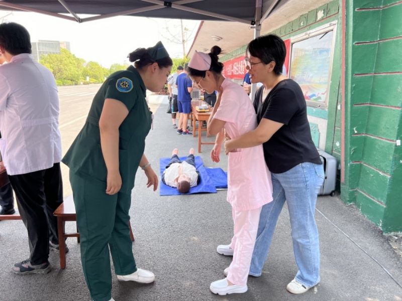 活動中,中心醫(yī)院急救組現(xiàn)場指導(dǎo)和演練了心肺復(fù)蘇急救、海姆立克急救技能,詳細、細致地為職工們解釋了什么時候需要心肺復(fù)蘇以及如何呼救,心臟按壓時的手法和按壓深度,人工呼吸吹氣時的注意事項等內(nèi)容。通過講解,職工感到受益匪淺,他們笑著調(diào)侃說:“真是百看不如一練?!?