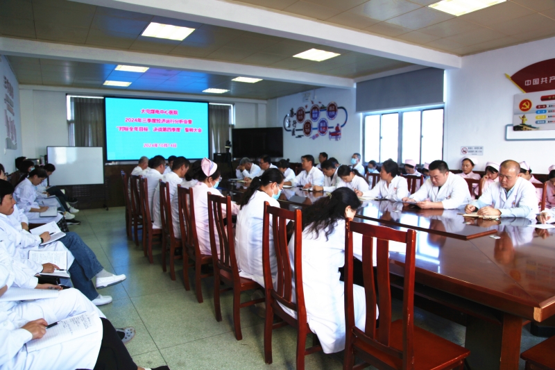 10月14日下午,大屯煤電公司中心醫(yī)院召開2024年三季度經(jīng)濟(jì)運(yùn)行分析會(huì)暨“對(duì)標(biāo)全年目標(biāo),決戰(zhàn)第四季度”誓師大會(huì),總結(jié)回顧1-9月份工作情況,分析經(jīng)濟(jì)運(yùn)行情況,安排部署四季度重點(diǎn)工作任務(wù)。會(huì)議由院黨委副書記、院長(zhǎng)張心海主持。院領(lǐng)導(dǎo)班子及護(hù)士長(zhǎng)以上管理人員參加會(huì)議。